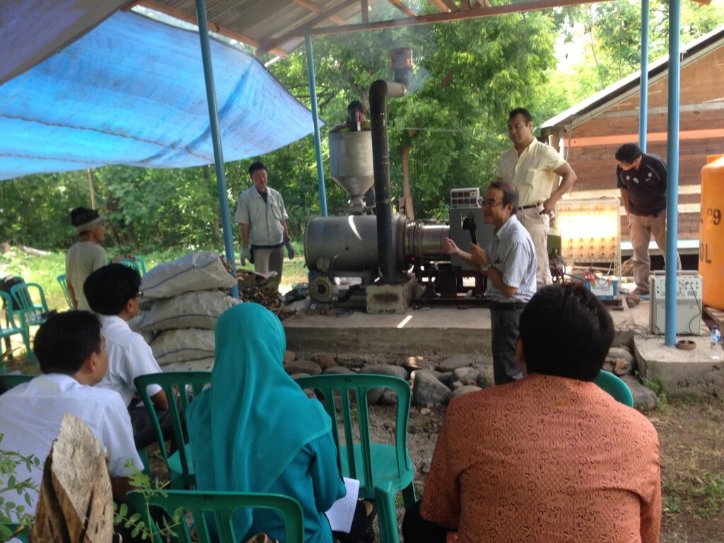 東ヌサトゥンガラ州フローレス島マウメレにあるヤトロファ農園(Dian Disa財団内)にてワークショップを実施しました。ヤシ殻や剪定枝を燃料にスターリングエンジンバイオマス発電のデモンストレーションを4日間行いました。